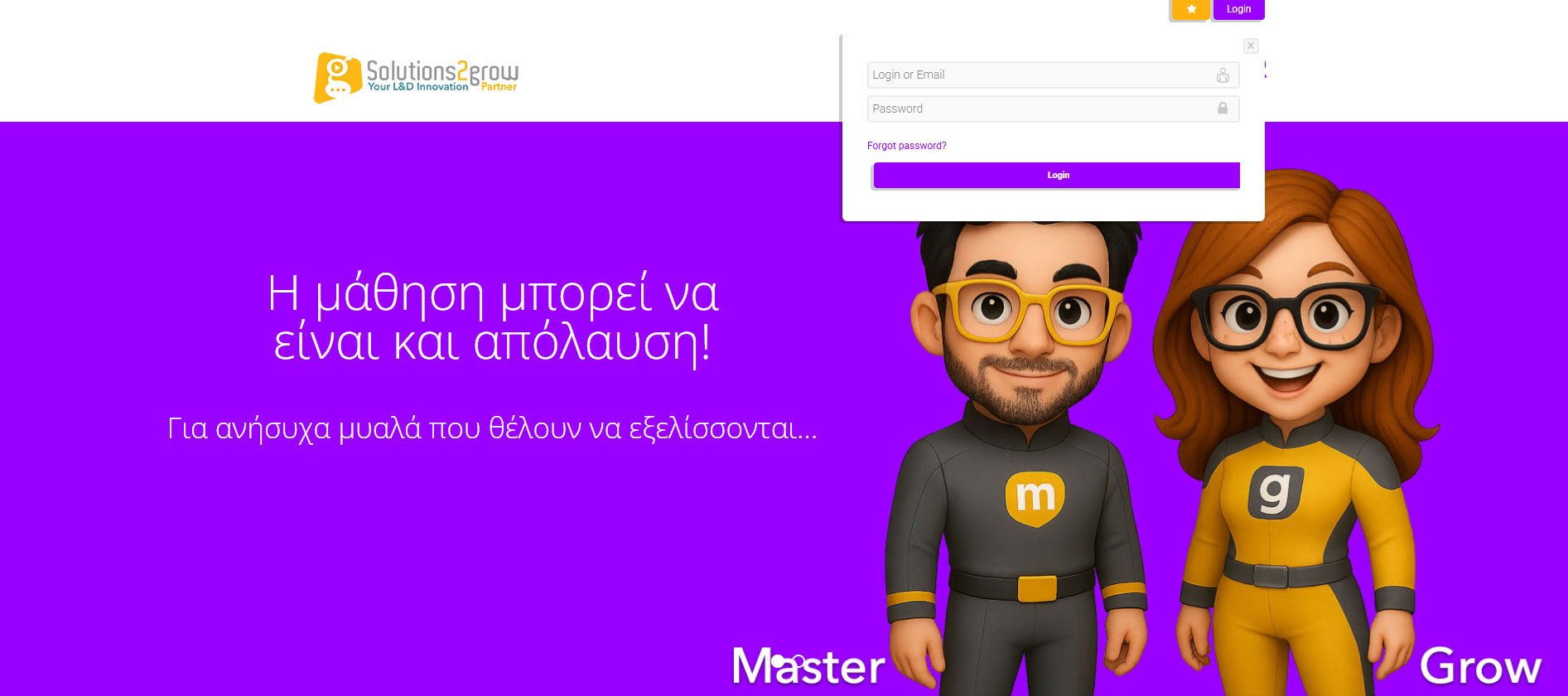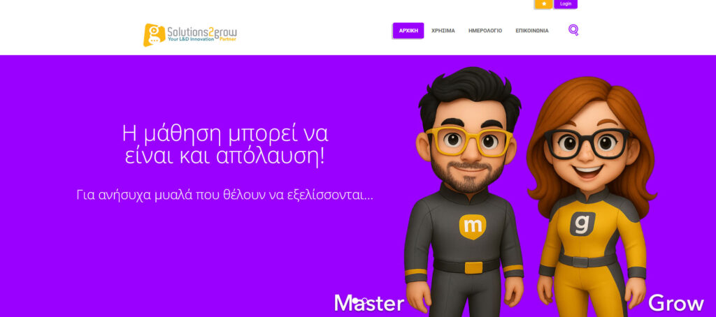 Καλώς ήρθατε στην πλατφόρμα eLearning 1. Κάντε κλικ στο “Login” στο μπλε Μενού επάνω δεξιά 2. Εισάγετε το “Ψευδώνυμο” ή την “Ηλεκτρονική σας διεύθυνση (email)” Βάλτε το συνθηματικό σας (password) Κάντε κλικ στο “Login” 3. Τώρα βρίσκεστε μέσα στον λογαριασμό σας και μπορείτε να κάνετε κλικ στα μαθήματα σας για να τα δείτε και να ξεκινήσετε!